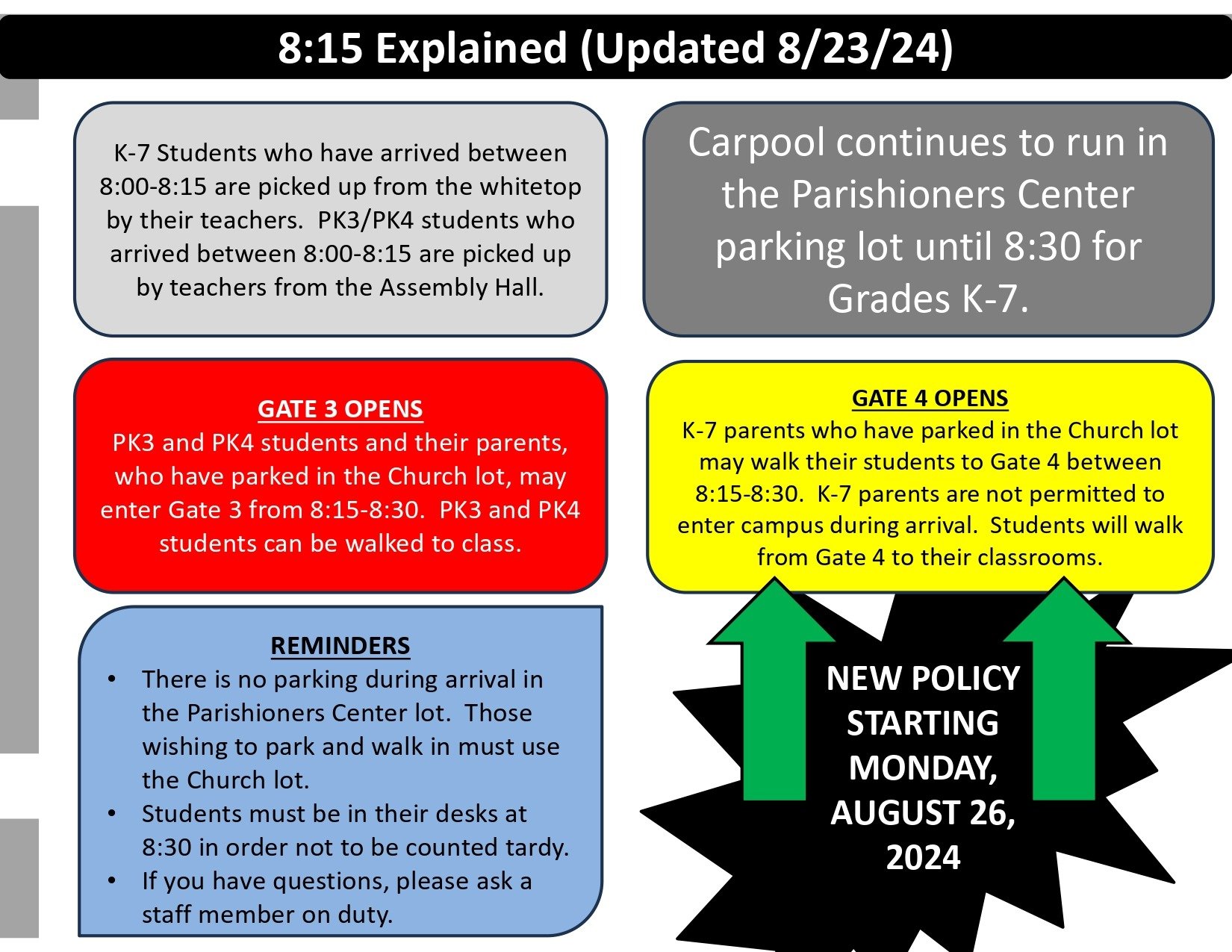 2. Once classes come down to their designated areas for dismissal, oldest siblings will be allowed to go to pick up their younger siblings from their designated dismissal locations. The oldest siblings will move through campus, they will not exit campus while collecting younger siblings.